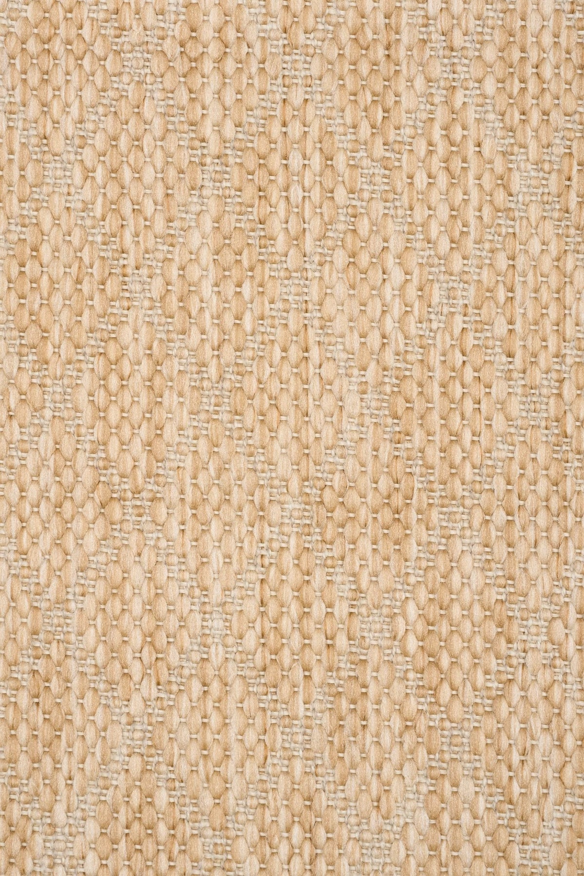 Top-down view of beige woven rug with subtle diamond lattice pattern on white background.