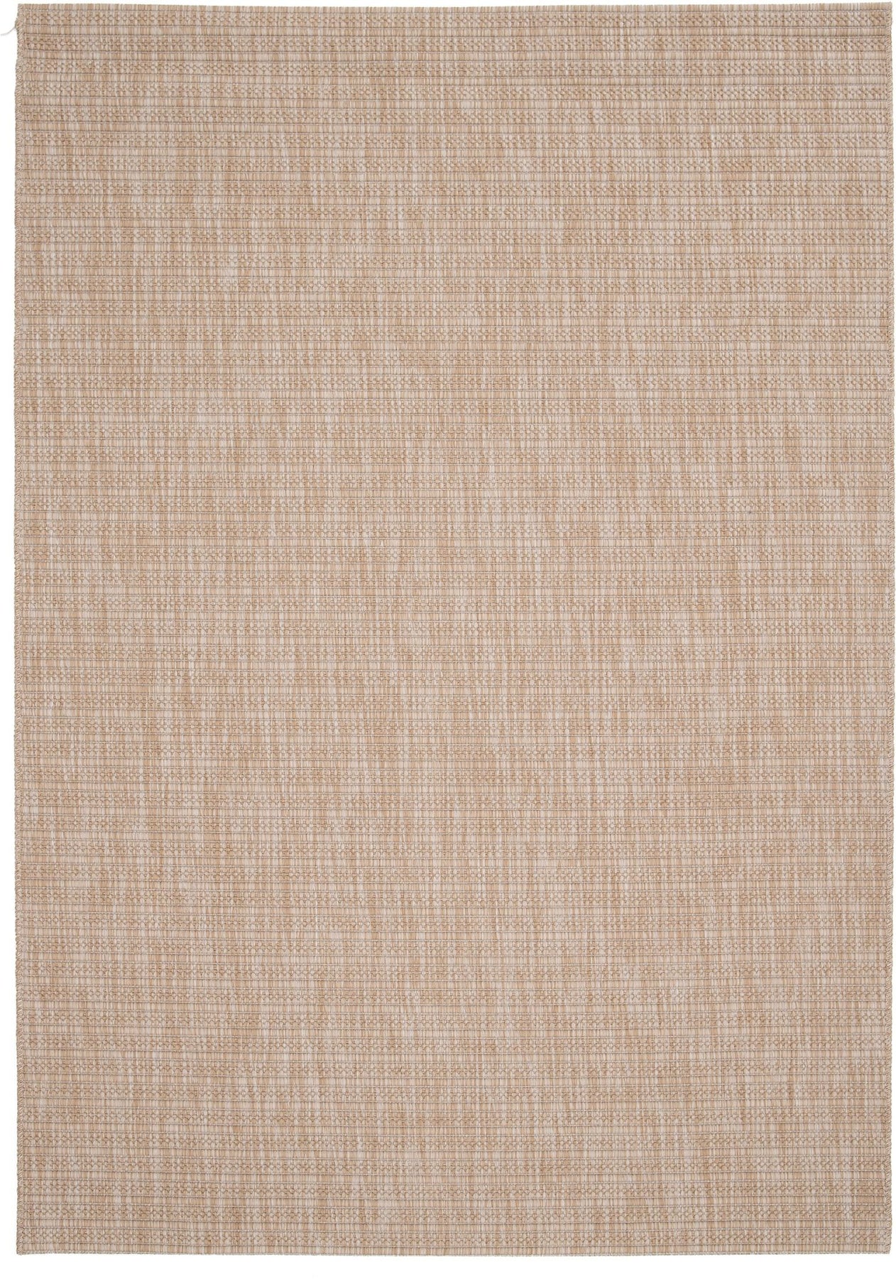 Overhead view of Barton rug in Sand with tonal basketweave texture and clean borderless edge.