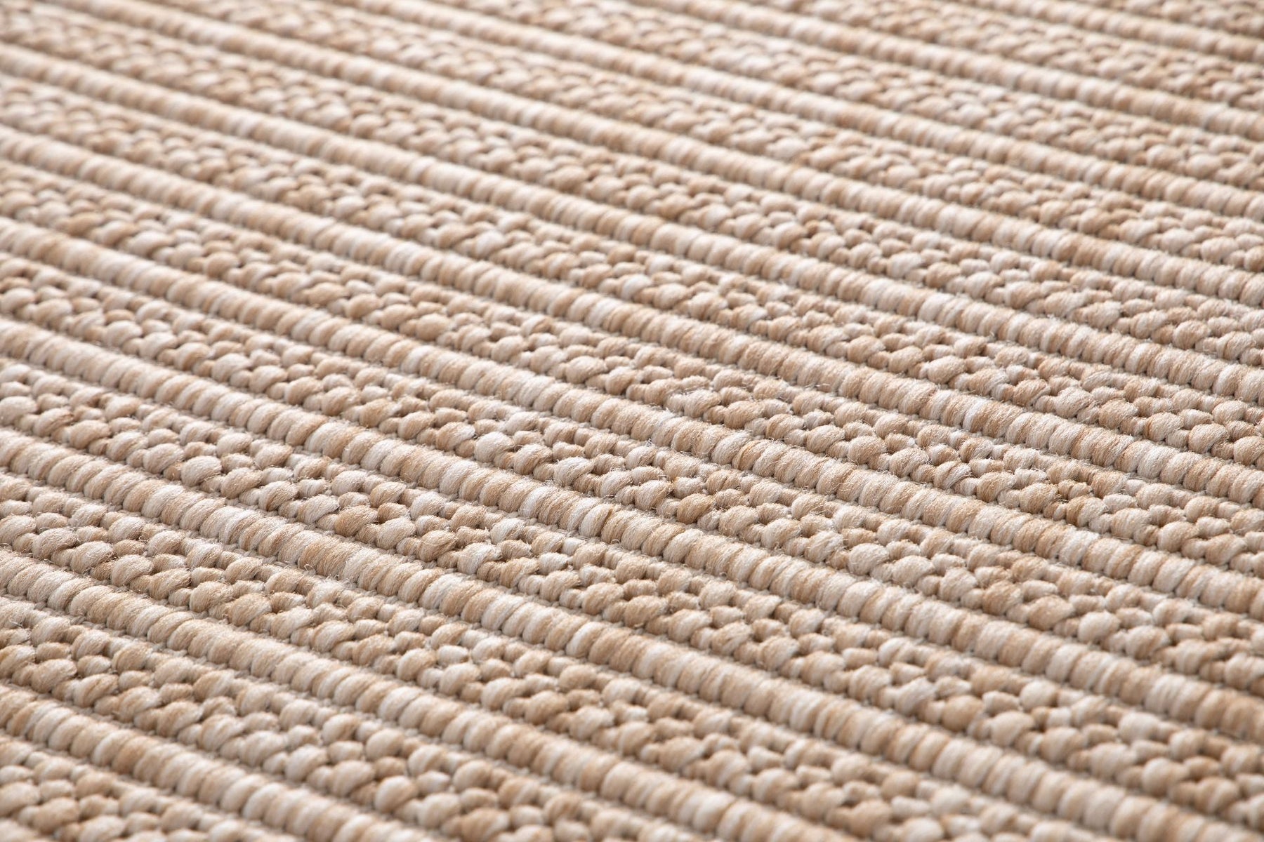 Macro close-up of Barton rug in Sand, showing chunky two-tone beige and ivory basketweave loops.