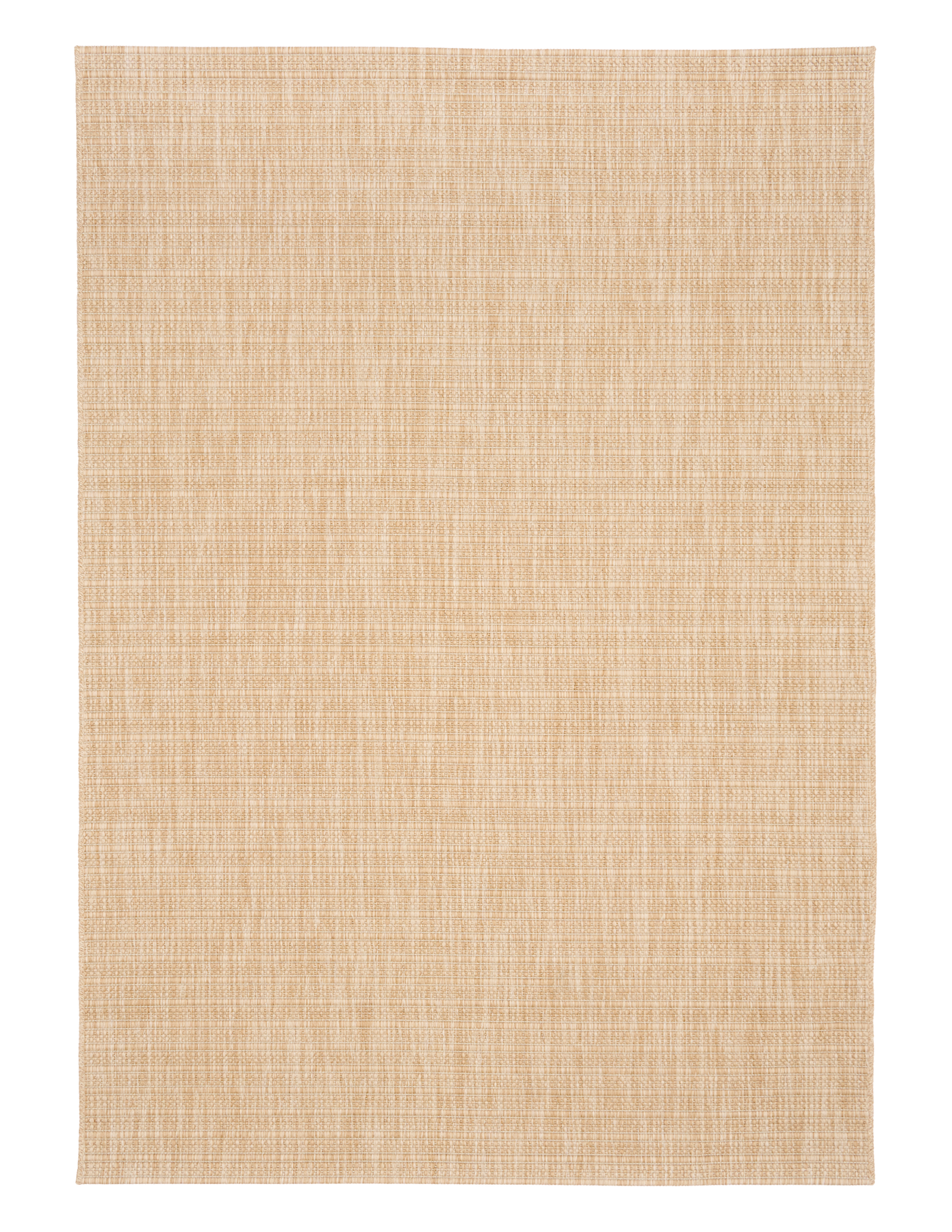 Perspective view of Barton rug in Sand with flatwoven basketweave and clean edges on white.