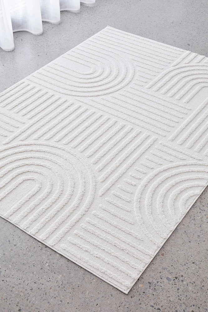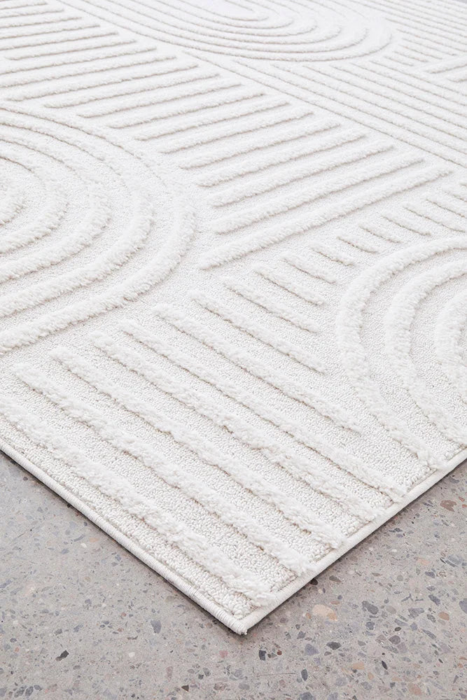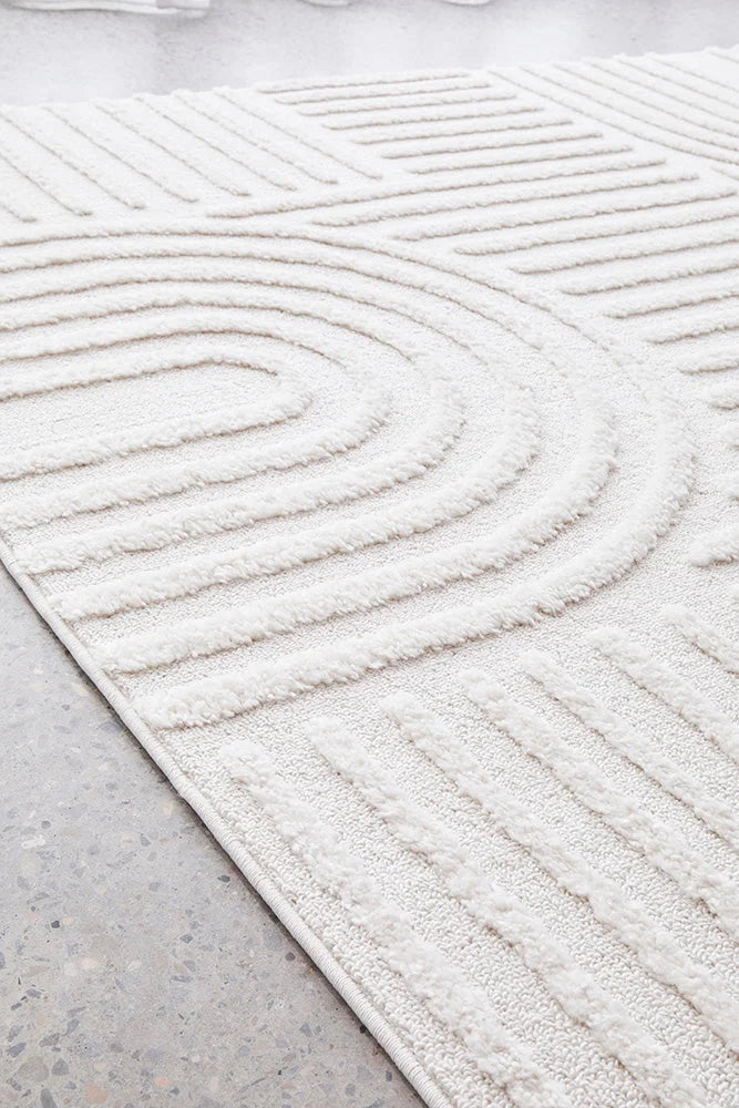 A timeless piece, the Marigold Dior white offers calm and balance with its beautiful arch designs. Made in Turkey and power loomed to a perfect 30mm pile height, this piece projects calming vibes brought forth by its soft palette.