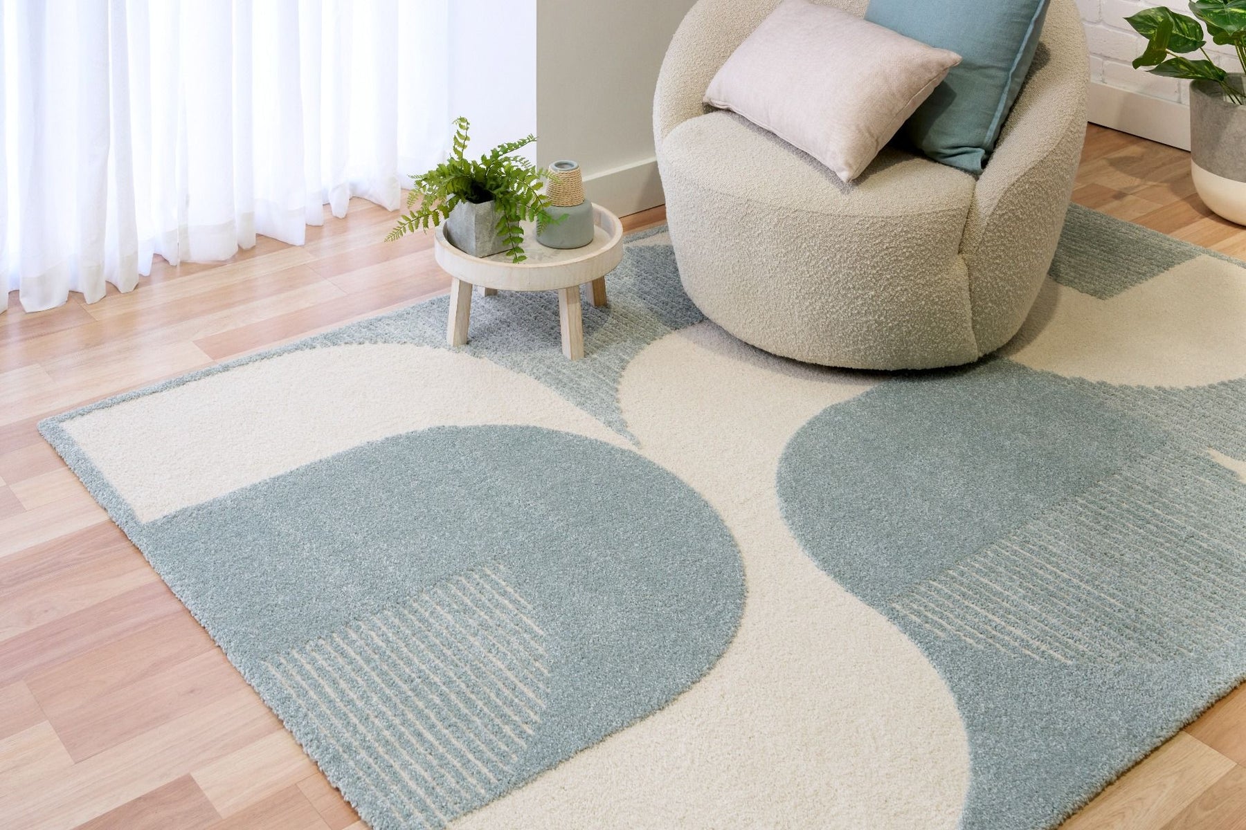 The retro-inspired geometric patterns pair well with mid-century modern, Scandinavian, and contemporary interiors.