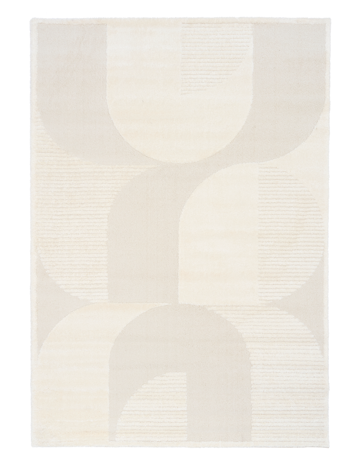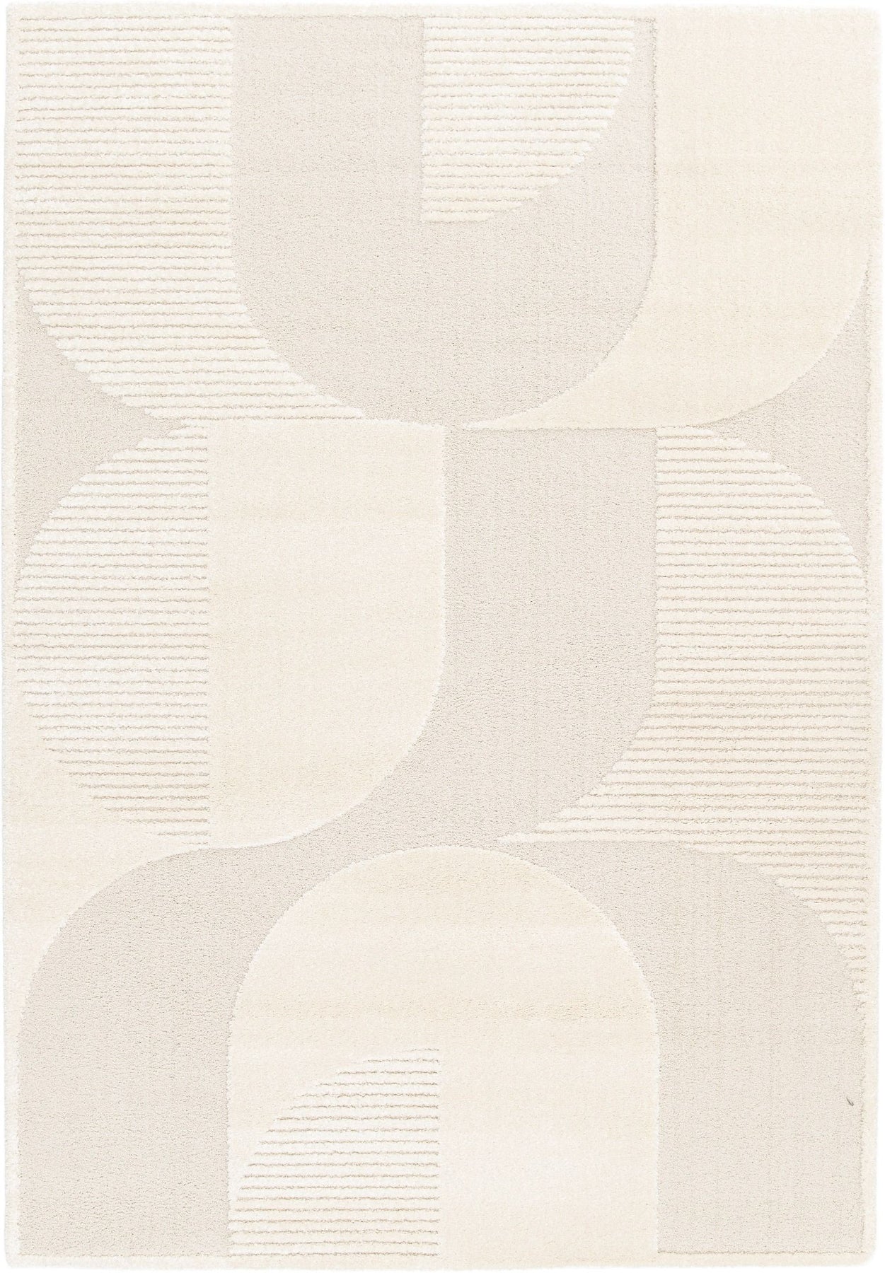 Cream geometric rug with subtle curved pattern.