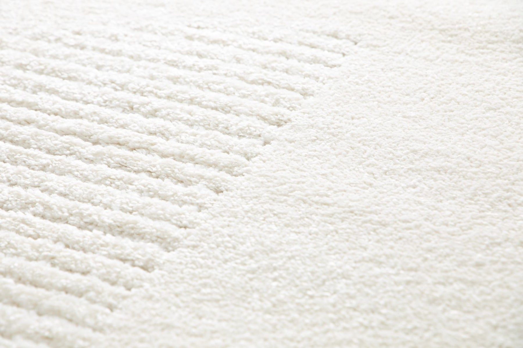 Detailed view of a cream rug edge with a soft pile.